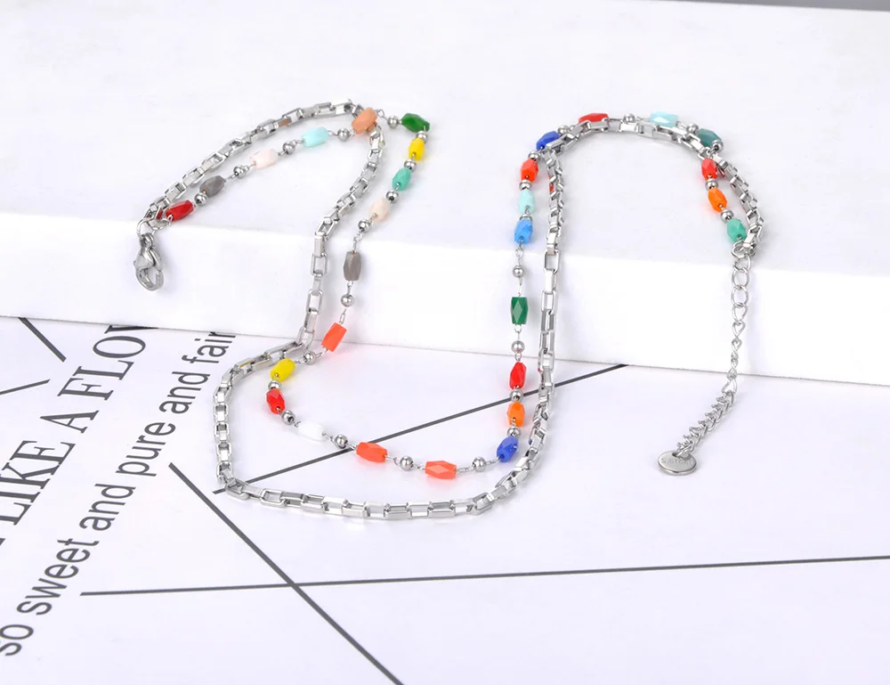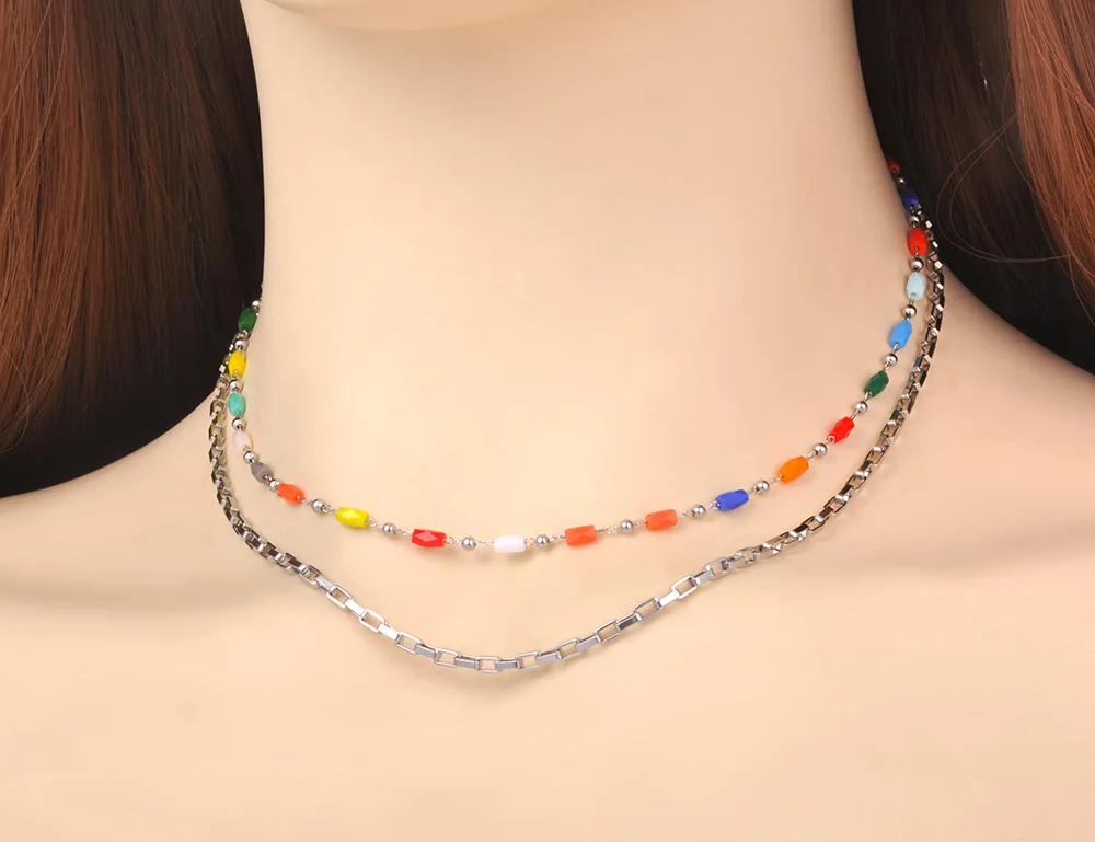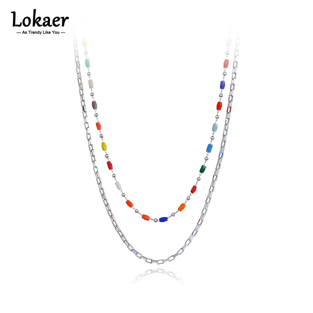 Женское Двухслойное ожерелье-чокер Lokaer, модное ожерелье из нержавеющей стали в богемном стиле, модель N21298