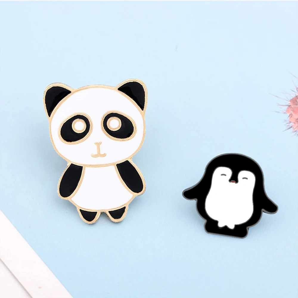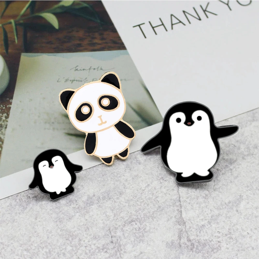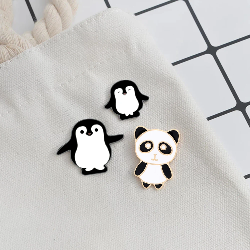 Эмалированные значки с мультяшным пингвином, милые черные и белые значки с животными, джинсовые значки, аксессуары для детей, подарок