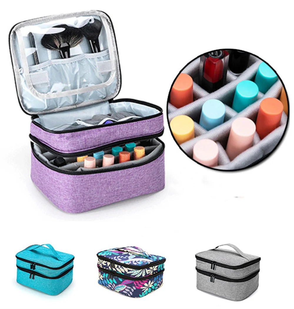 Вместительная двухслойная портативная коробка для хранения ногтей, можно носить с собой лак для ногтей, сумка для хранения эфирных масел, водонепроницаемая косметичка