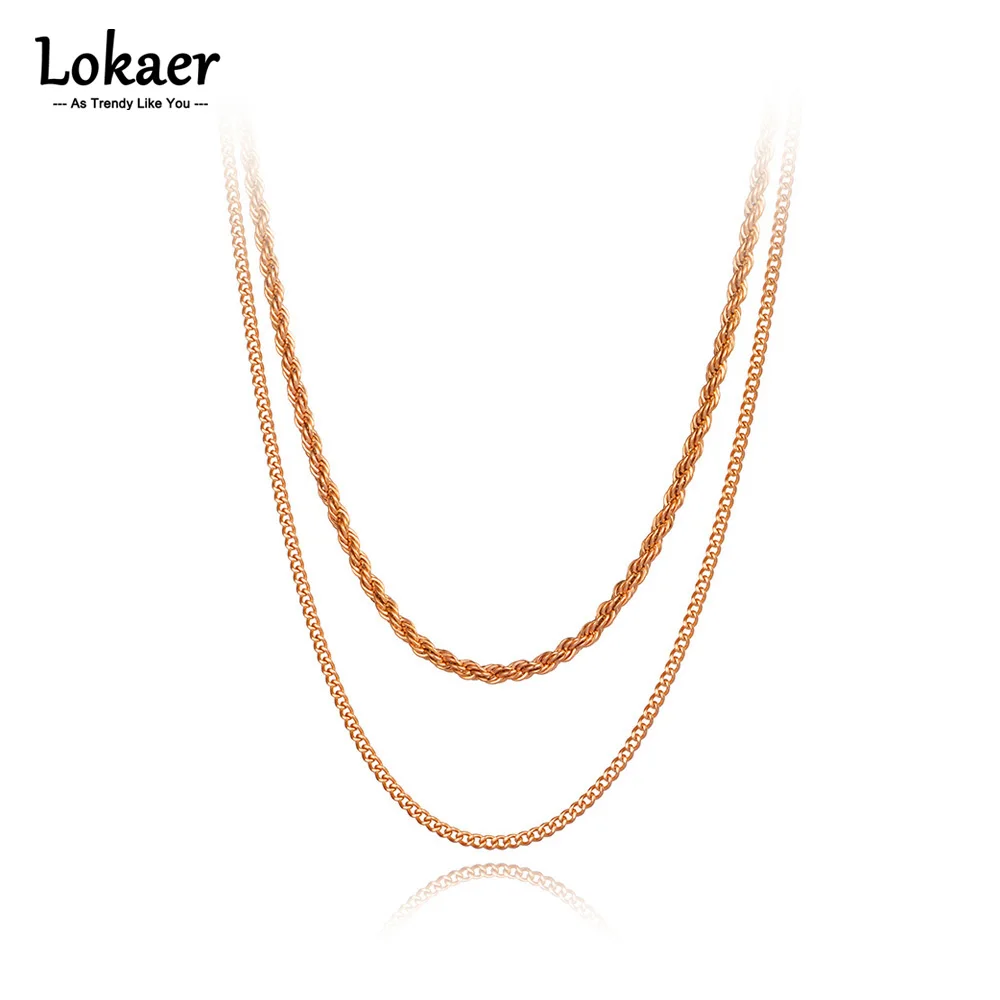 Цепочка Lokaer из нержавеющей стали и титана, витая цепь из розового золота, Сингапур, модное богемное праздничное ожерелье для женщин и мужчин, N21290