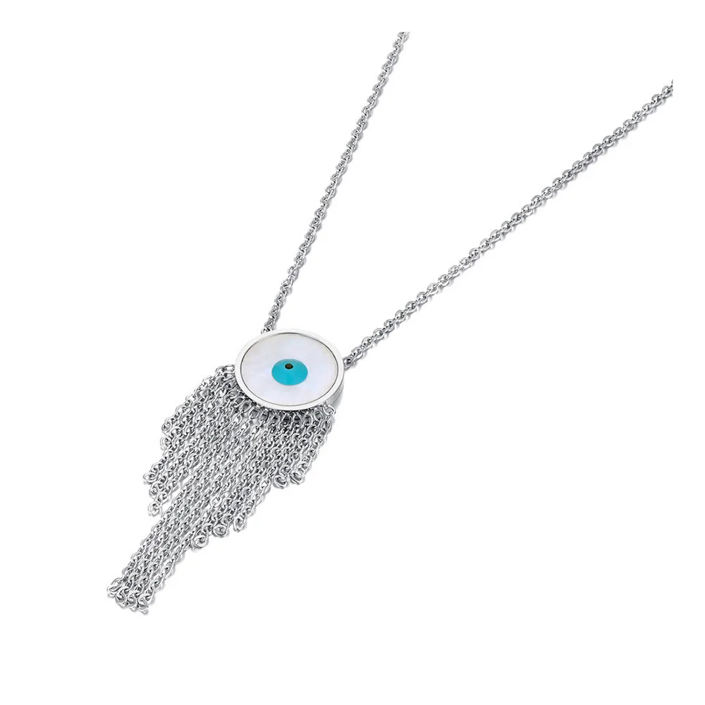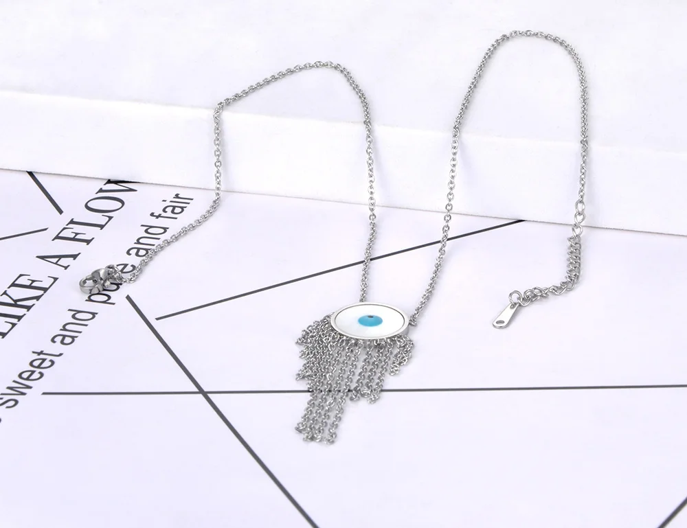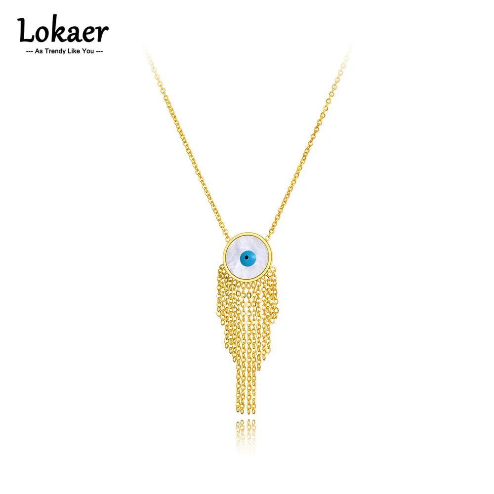 Женское Ожерелье Lokaer, ожерелье из нержавеющей стали цвета 18-каратного золота в стиле хип-хопрок с турецкими глазами, ожерелье с кисточками в богемном стиле, ювелирные изделия, N21260