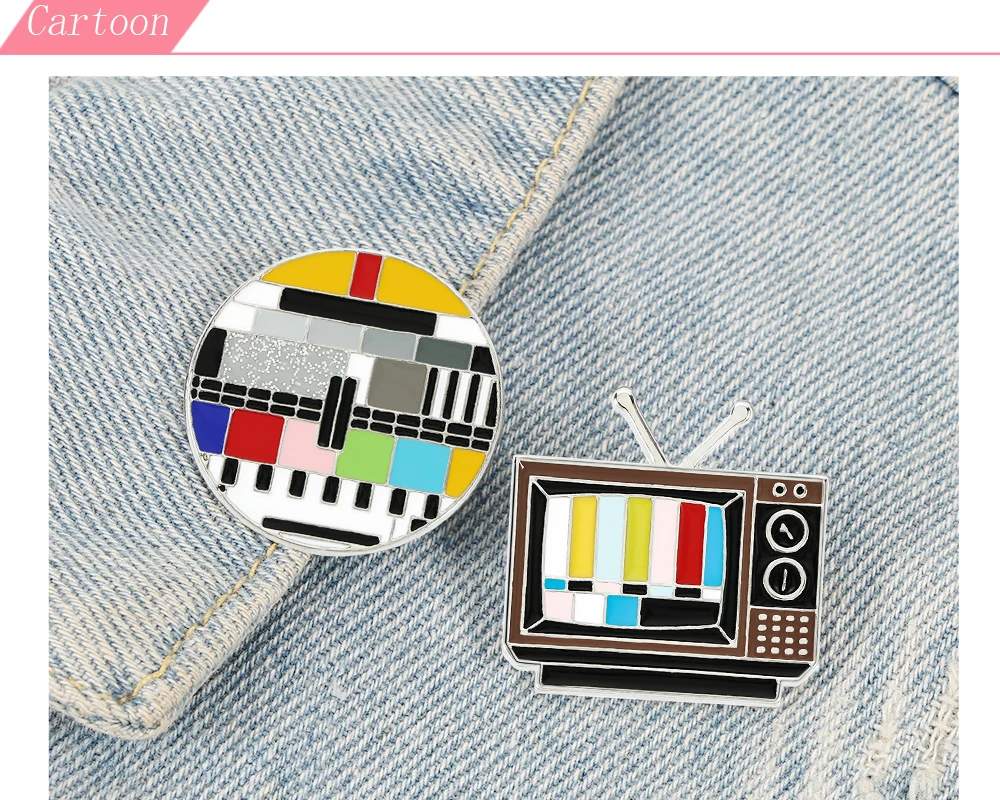 Эмалированные булавки без сигнала, брошь на экран старой школы для телевизора, джинсовая булавка для рубашки, сумки, креативный индивидуальный значок, забавные ювелирные изделия, подарки для детей, друзей