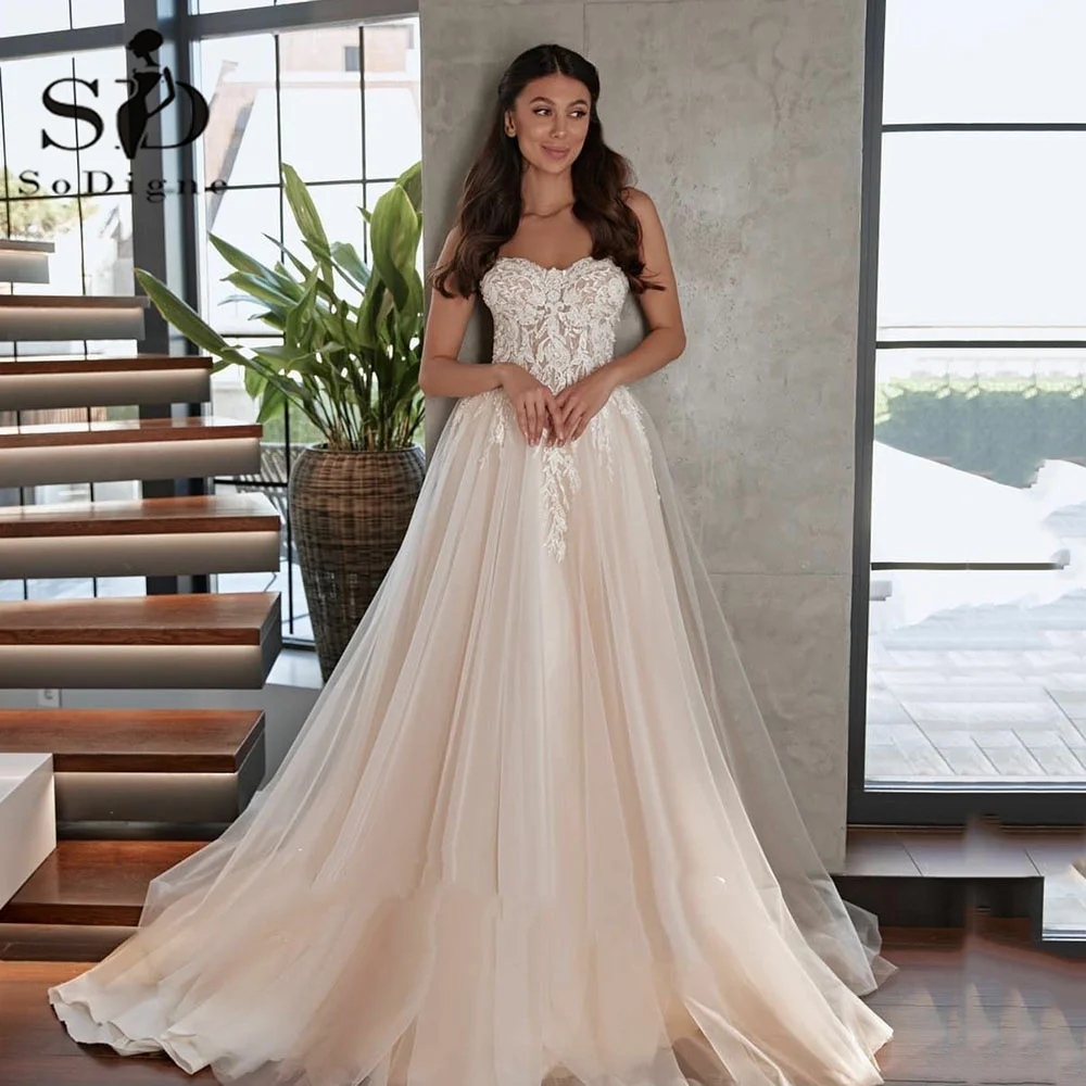 Женское свадебное платье со съемным шлейфом SoDigne, длинное кружев...