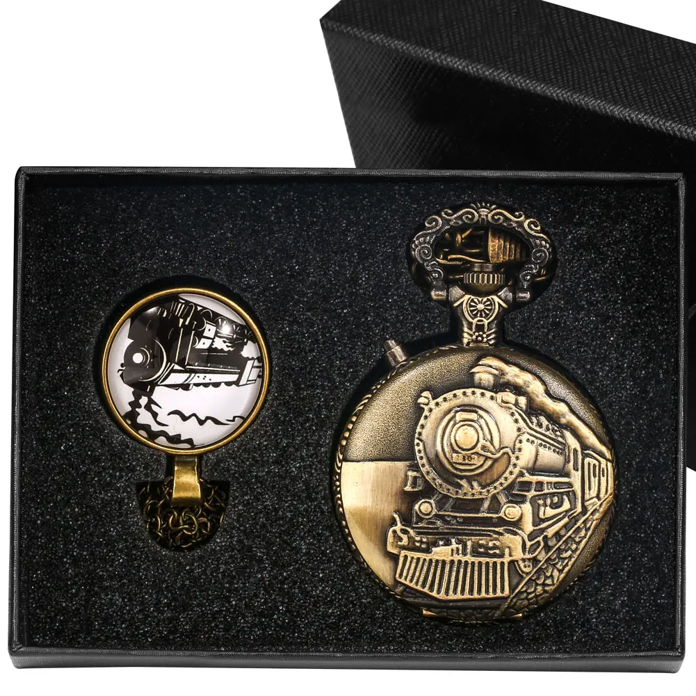 Карманные часы для мужчин в стиле ретро, карманные часы со светильник кой, карманные часы с белым циферблатом, мужские карманные часы с ожерельем, 2 шт.компл., подарочный набор