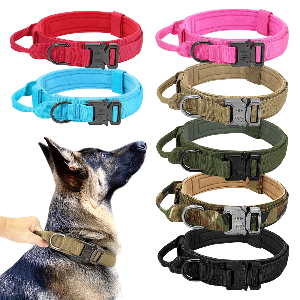 Прочный тактический ошейник для собак, Военный нейлоновый ошейник с ручкой для средних и крупных собак, Аксессуары для тренировок немецкой овчарки