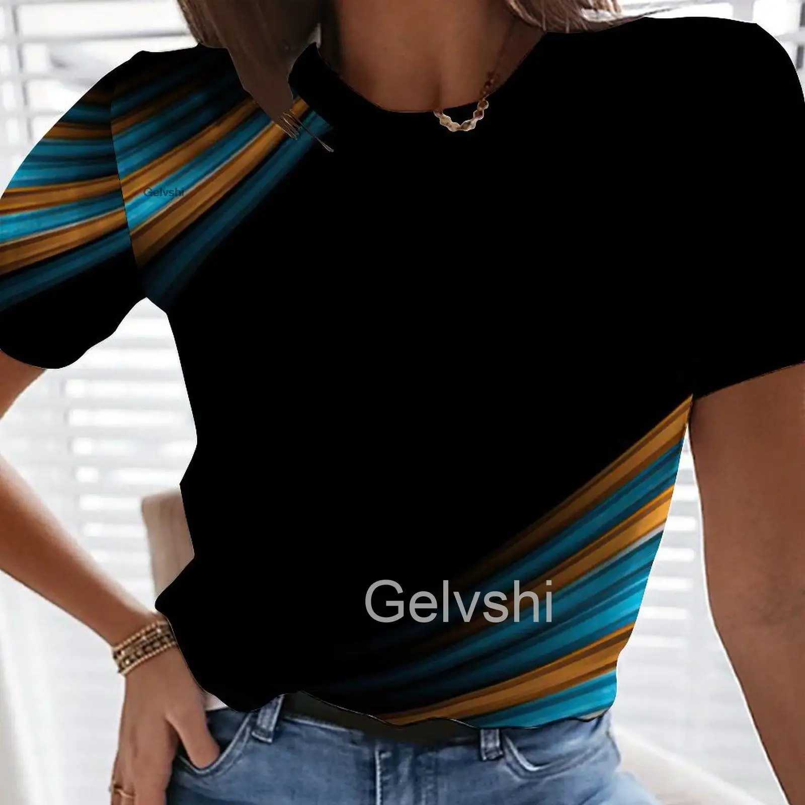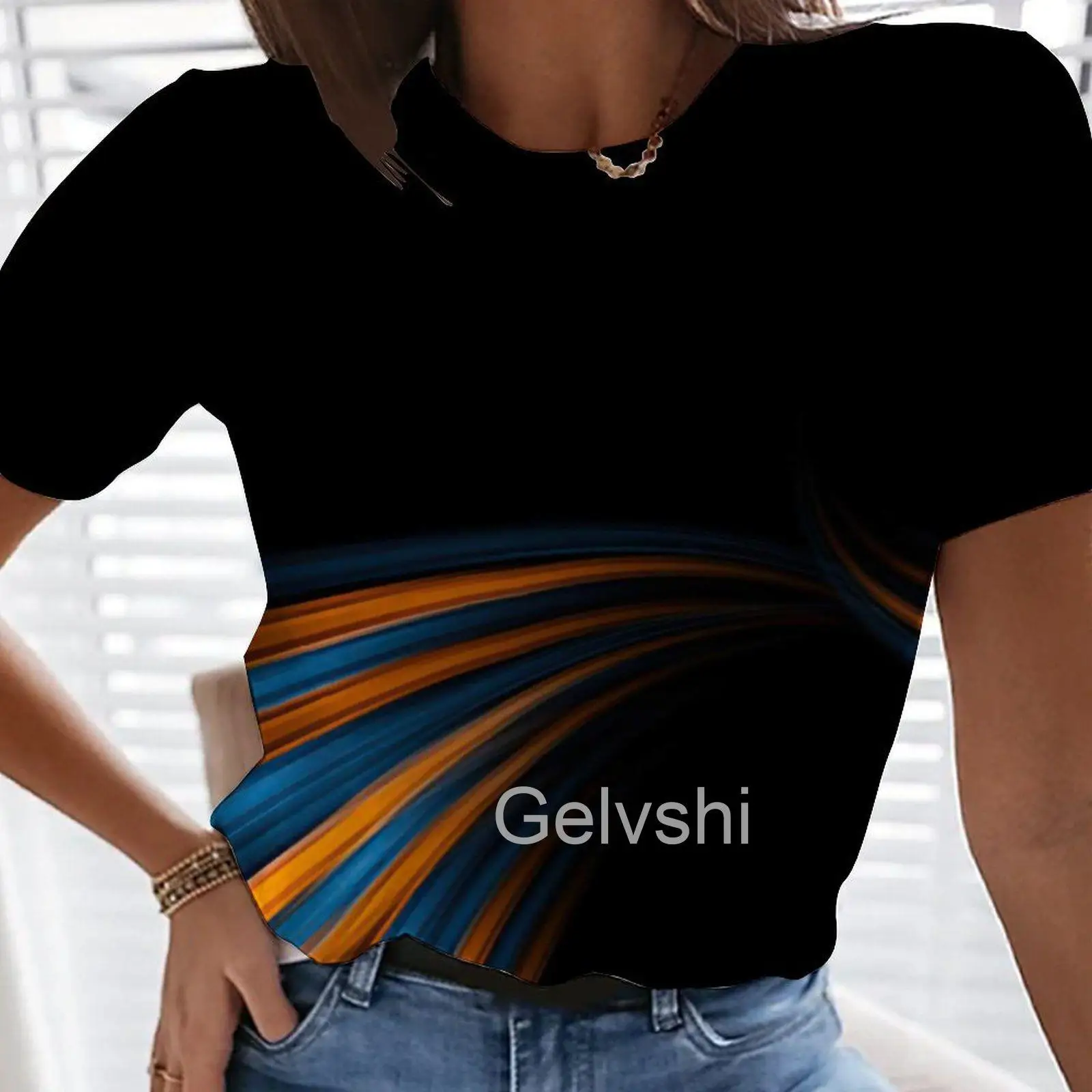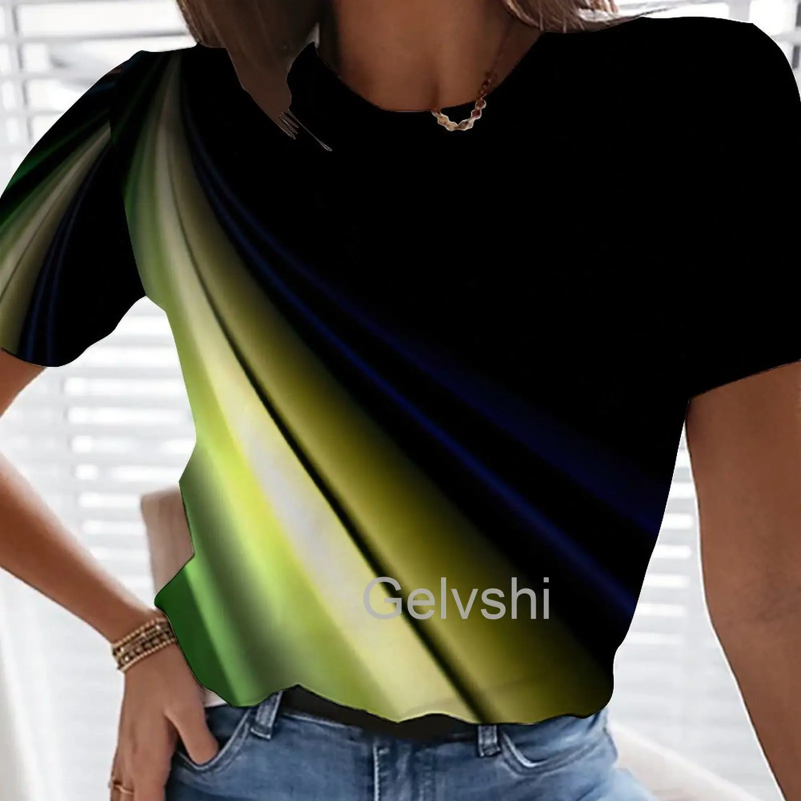 Новые блузки, футболки с градиентной графикой и 3d принтом, женская футболка с коротким рукавом, эстетичные повседневные уличные рубашки, блестящие топы со стежками