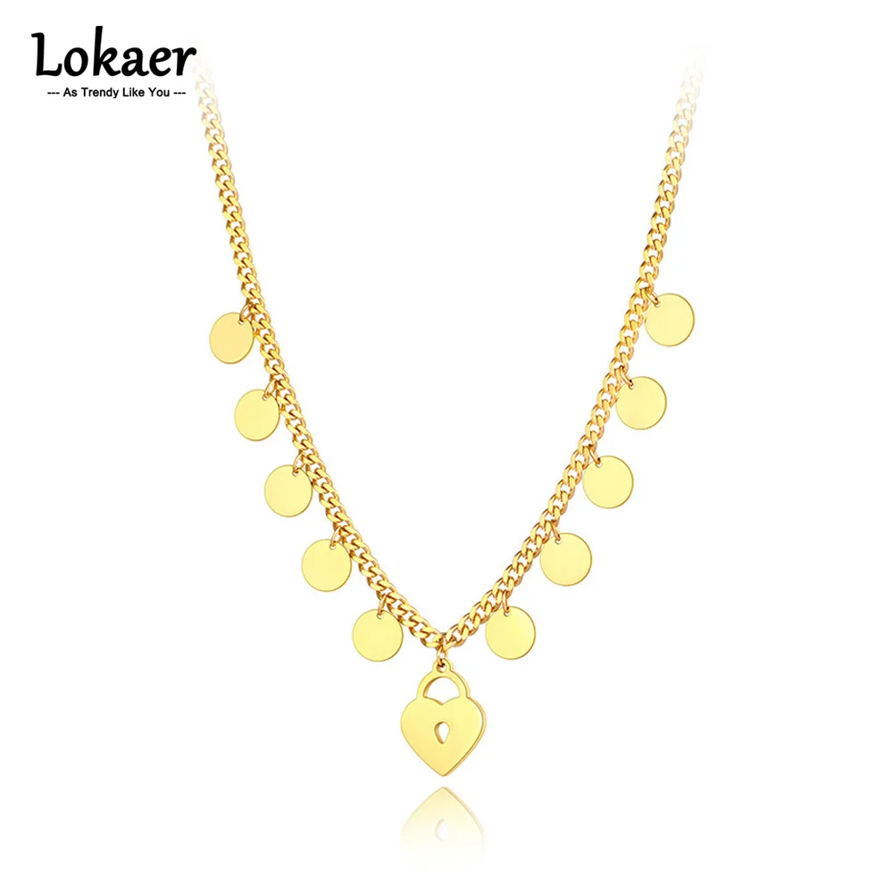 Ожерелье-чокер Lokaer N21258 женское из нержавеющей стали и титана, романтичное ювелирное изделие с покрытием из 18-каратного золота в форме сердца, колье-чокер
