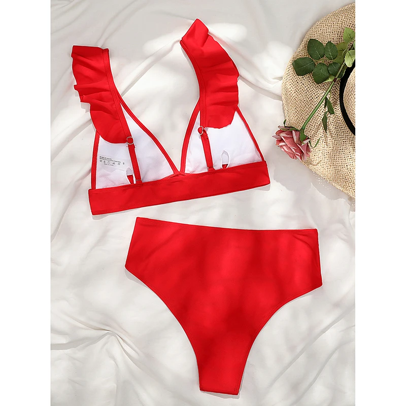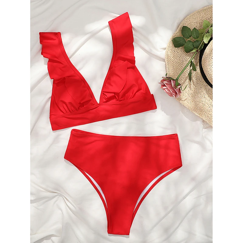 Бикини INGAGA с оборками, пикантный женский купальник с высокой талией, 2022, купальники, бикини с V-образным вырезом, красный комплект бикини, пляжная одежда, купальный костюм