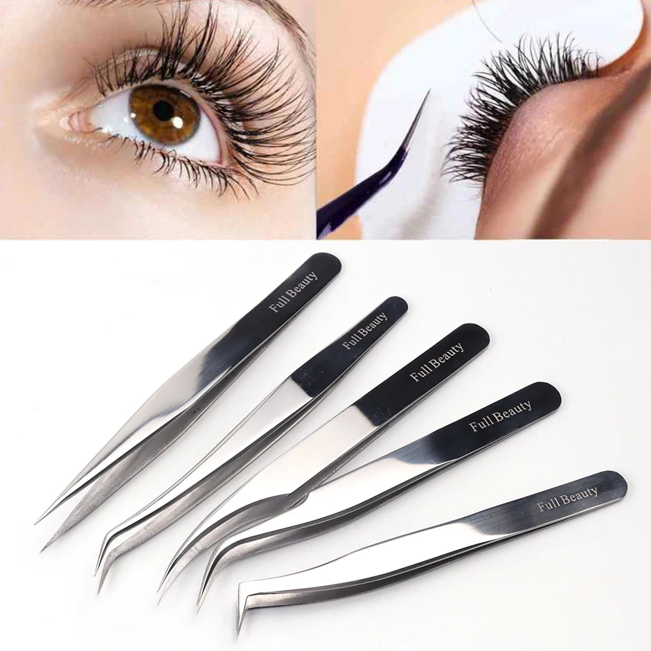 Пинцет для бровей из нержавеющей стали, изогнутый, прямой, для наращивания ресниц, уход, ремонт, дизайн ногтей