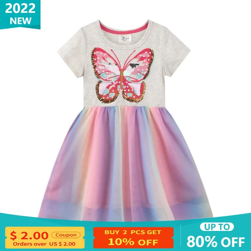 Платье принцессы с принтом бабочки для девочек, хлопковое Летнее Детское Сетчатое платье с коротким рукавом, одежда для маленьких девочек, элегантное детское платье