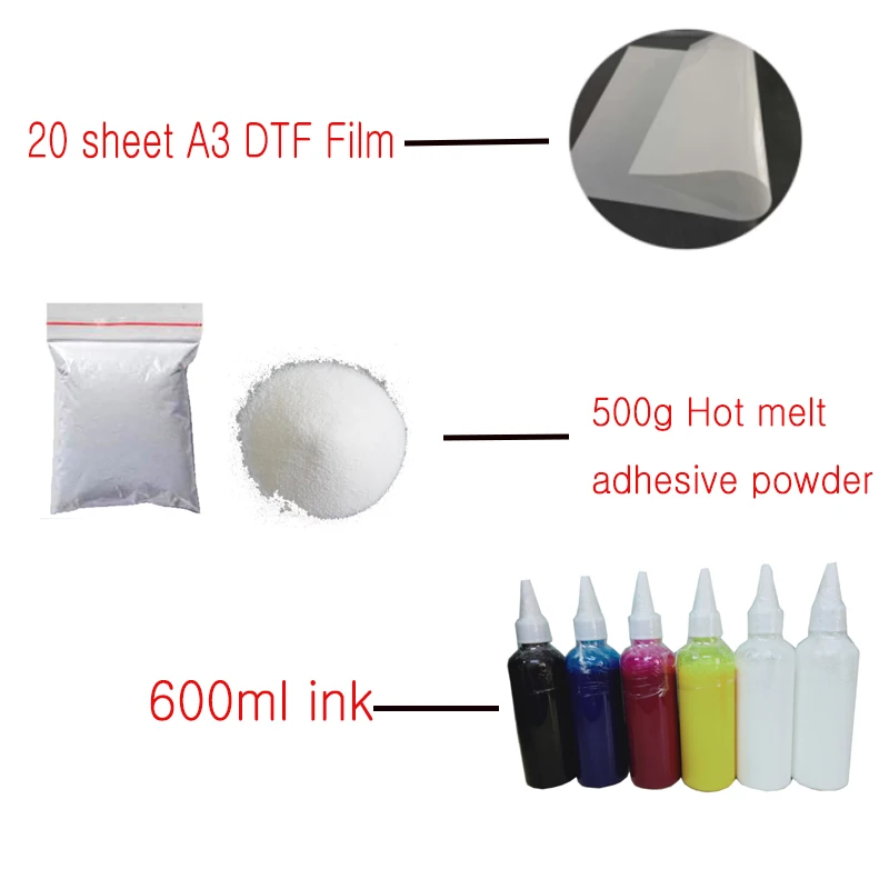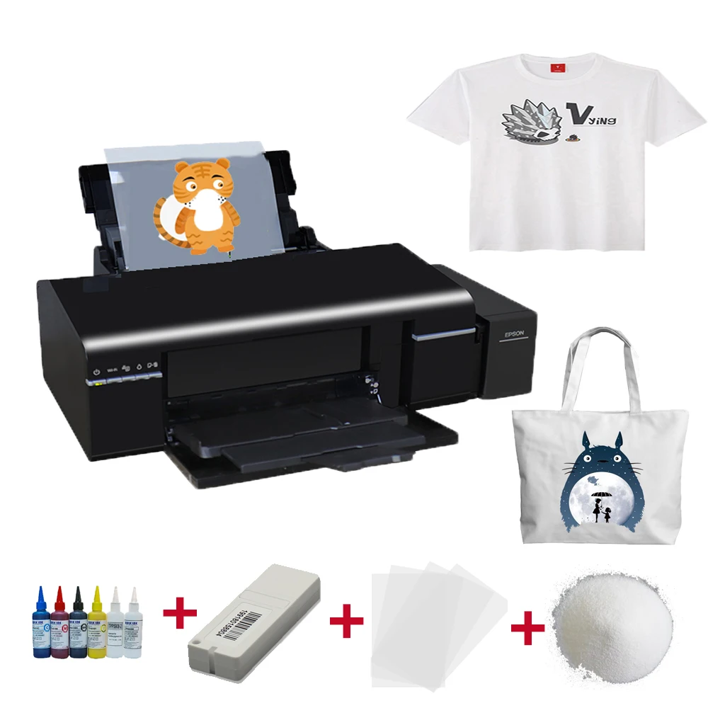 PackageL805 Printer +100 PCS DTF Film +600ML DTF ink +1 KG Powder+Softwar