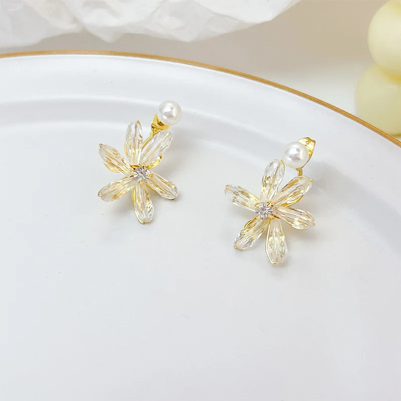 Корейские милые серьги-клипсы с ракушками и цветами без пирсинга же...