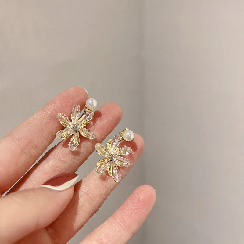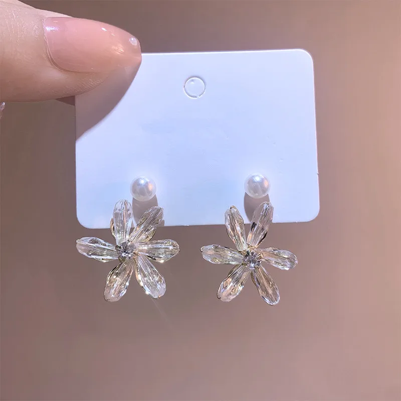 Корейские модные дизайнерские прозрачные акриловые серьги с цветами 2022 новые женские серьги