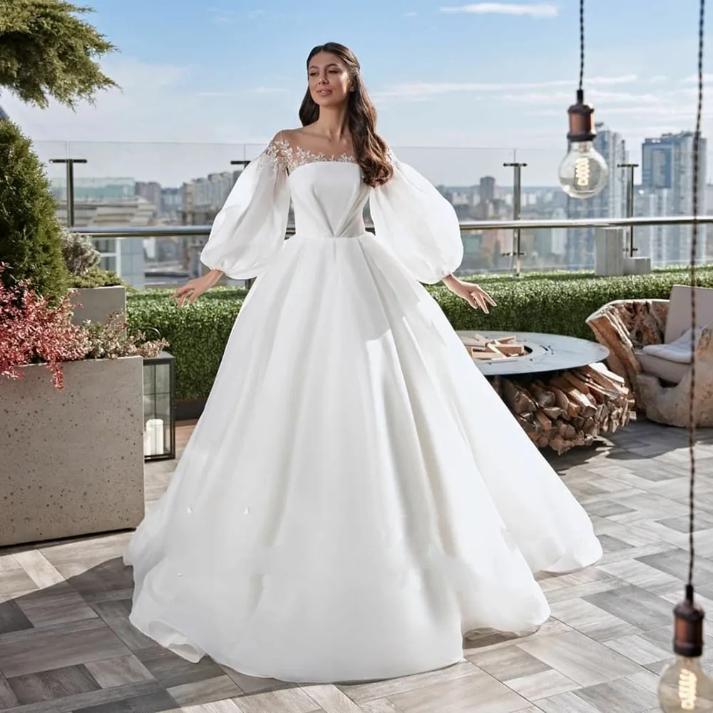 Атласное Бальное Платье soworthy, простое кружевное свадебное плать...