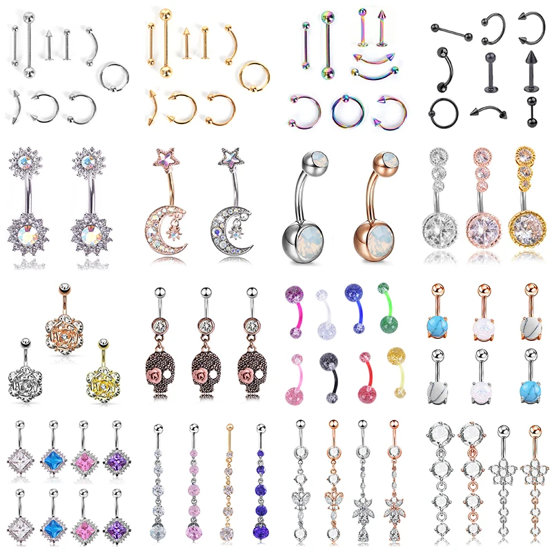 29 стильных стальных колец для пупка Хрустальный пирсинг пупка Солнце Луна пупок пирсинг серьги для пупка пирсинг сексуальное ювелирное изделие для тела Ombligo