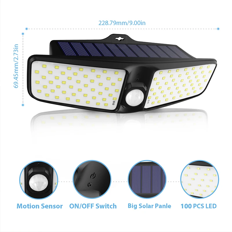 Уличная Водонепроницаемая настенная лампа с датчиком движения, 100 светодиодов