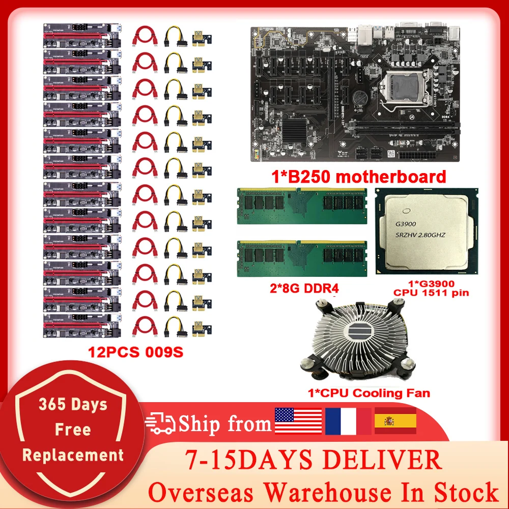 Комплект материнской платы B250 для майнинга с DDR4 VER009S009S PLUS 8x 16x PCIE RISER G3900, охлаждающий вентилятор ЦПУ для 8 12 GPU BTC ETH Майнер