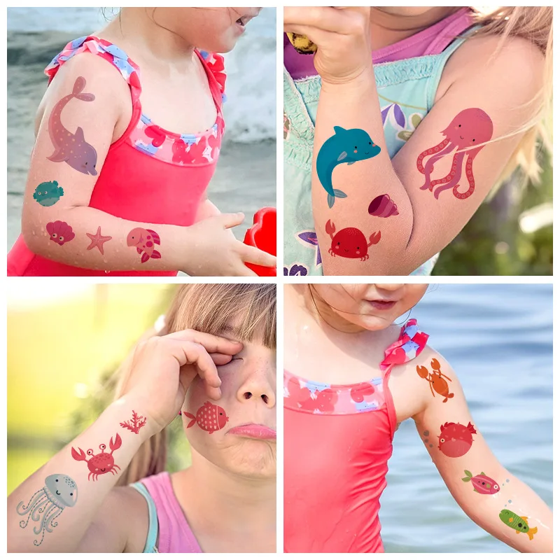 10 видов мультяшных татуировок с морской рыбой, одноразовые водонеп...