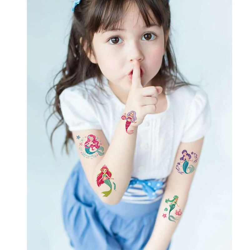 Детские временные тату-Стикеры, детские животные, кролик, жираф, Бабочка, Русалочка, морской мультфильм, водонепроницаемые боди-арт, маленькие поддельные тату