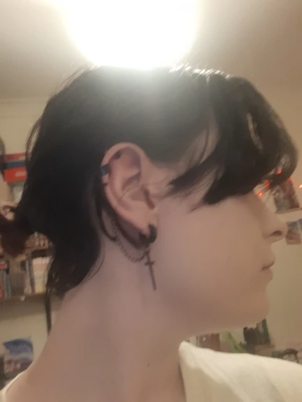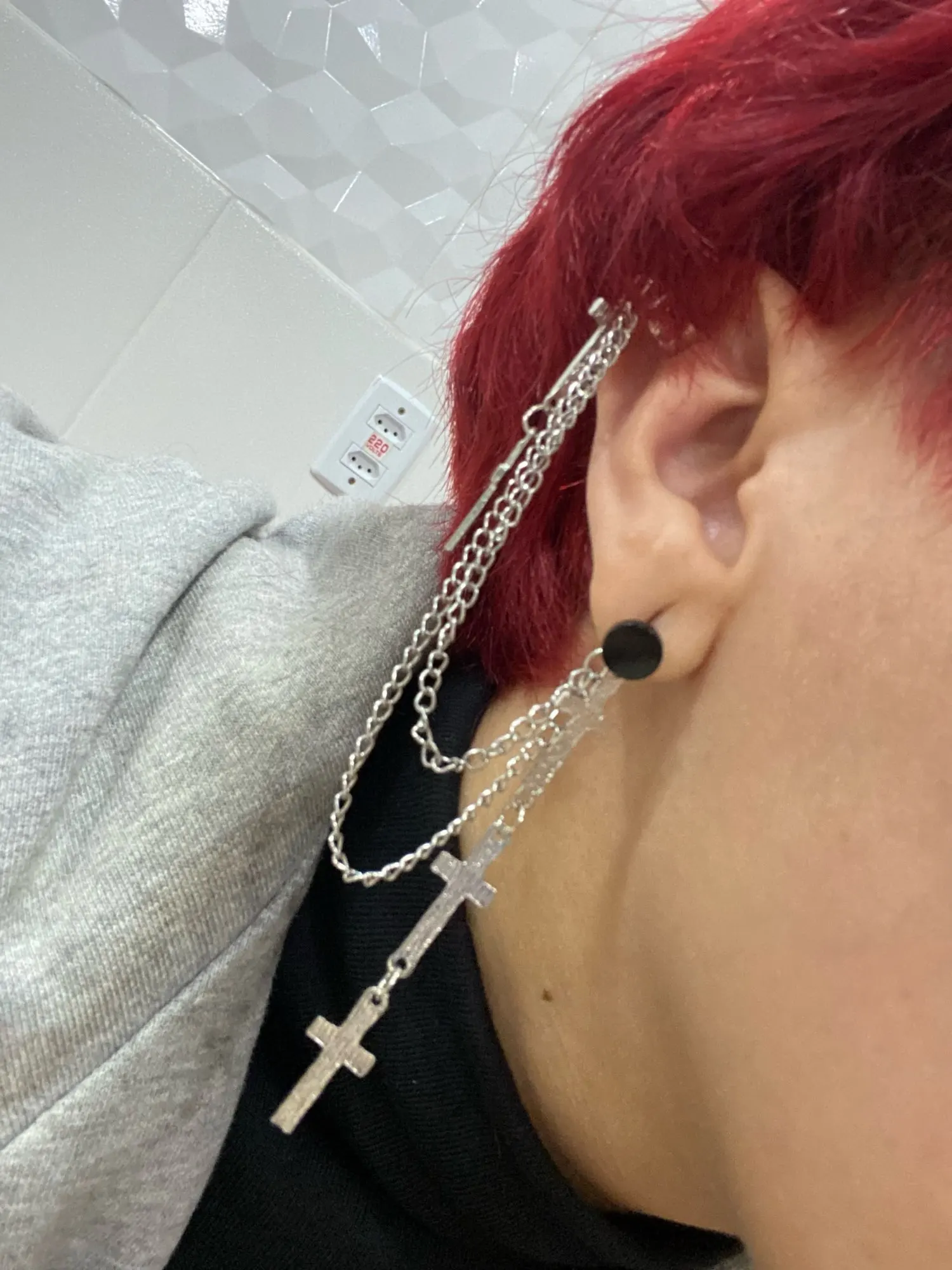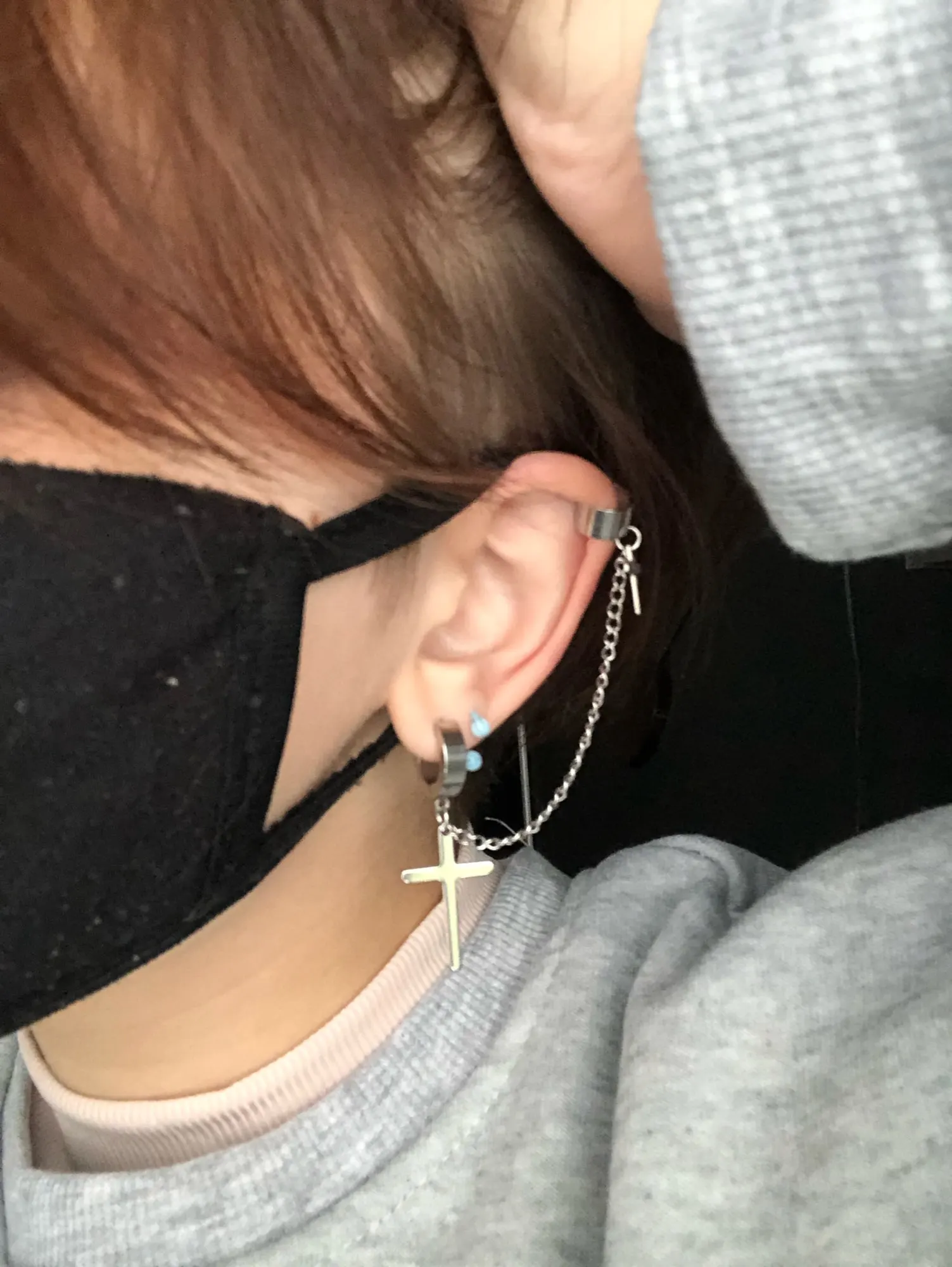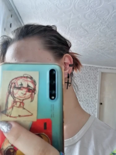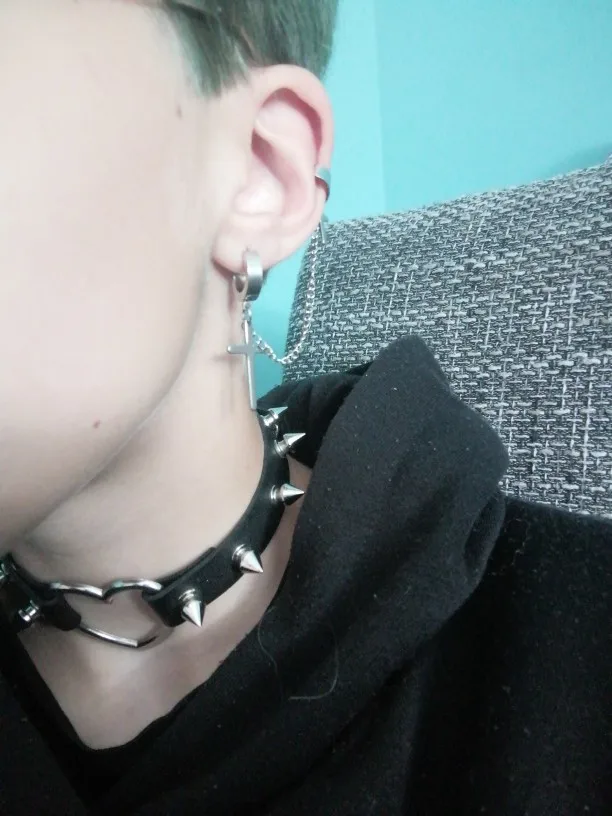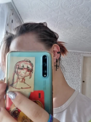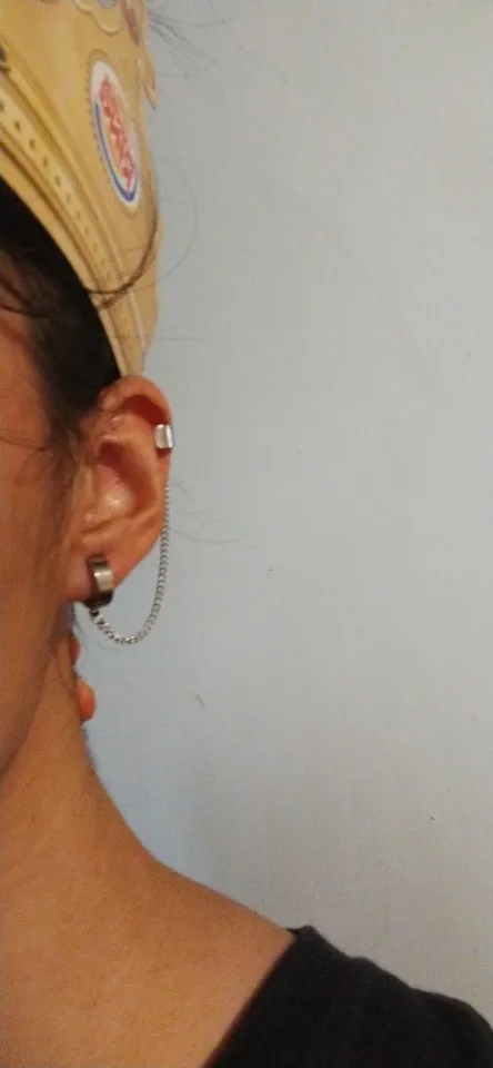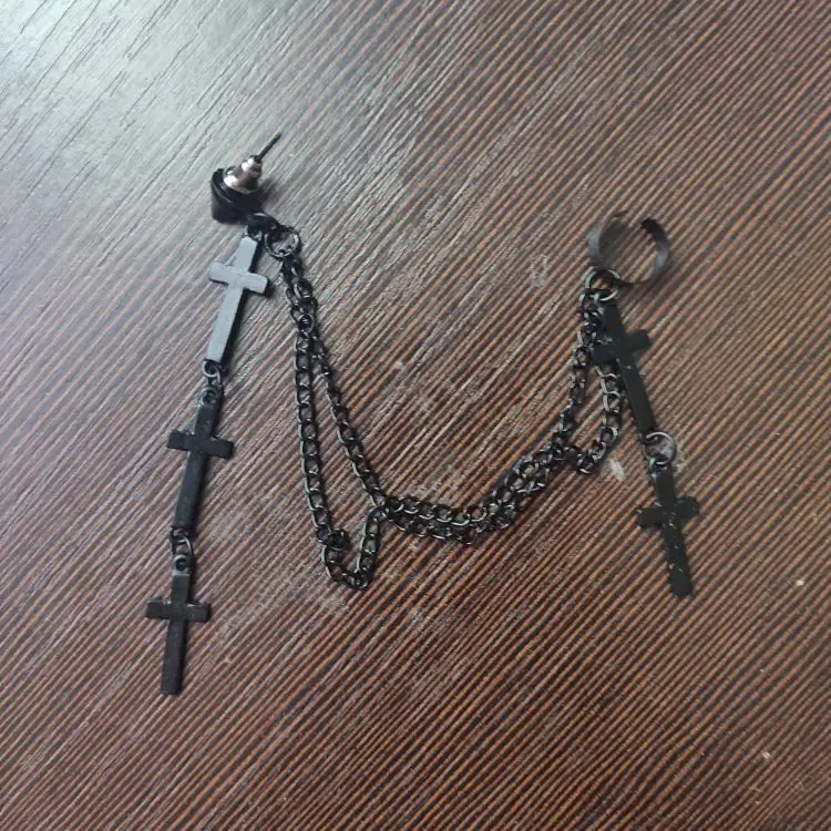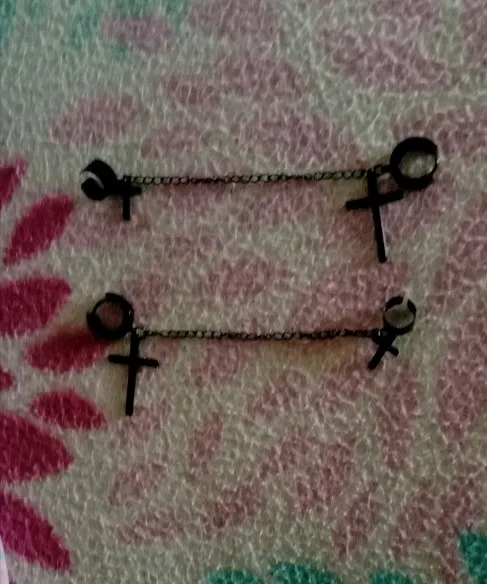 На крестах есть небольшие дефекты, но думаю, в этом нет ничего страшного, так как если не приглядываться, то этого и не заметно. Я думала серьга будет тяжелее, но оказалось что нет, она достаточно лёгкая и дискомфорта от колечка на хряще я не почувствовала