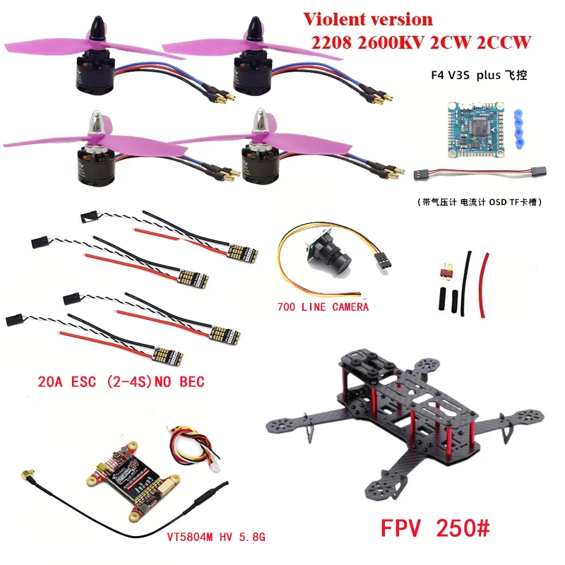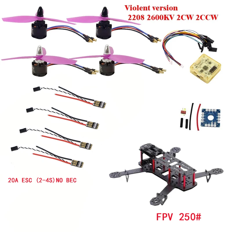 Qav250 полный комплект четыре стойки, двигатель 2208, cc3d F4 F7226...