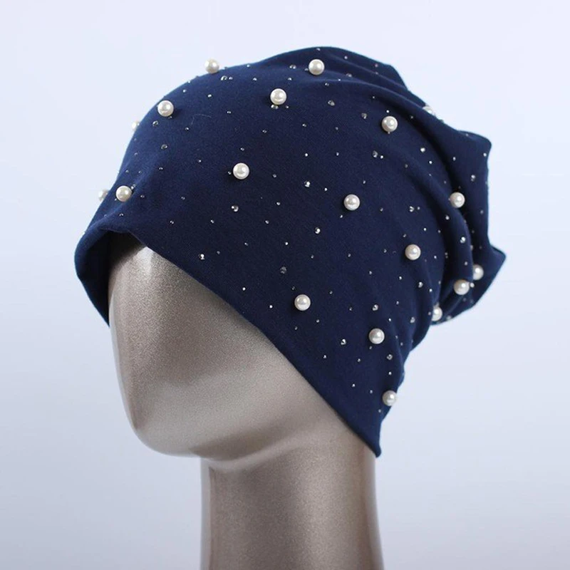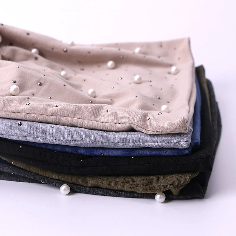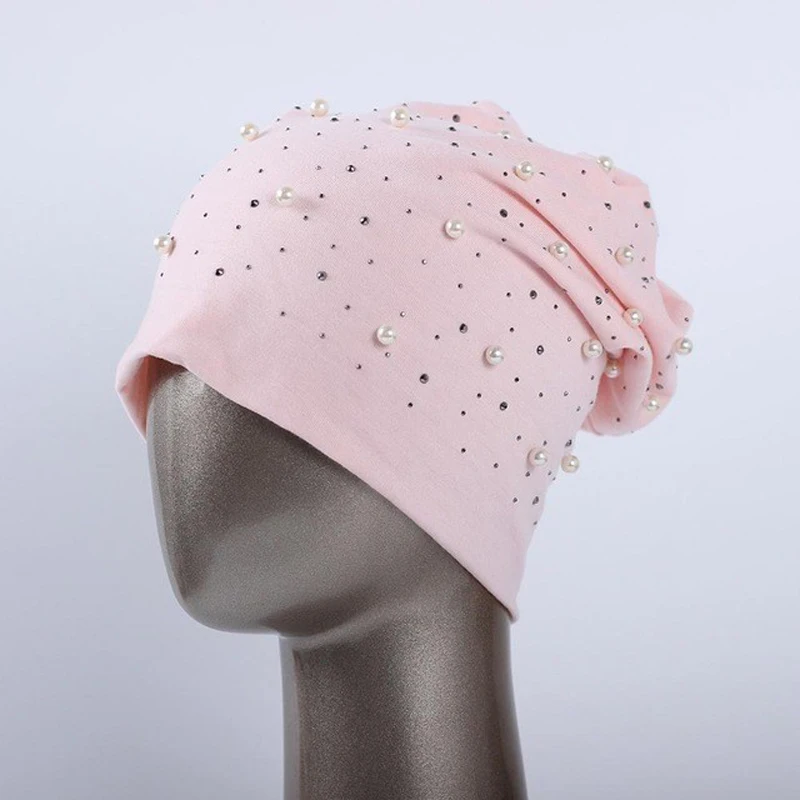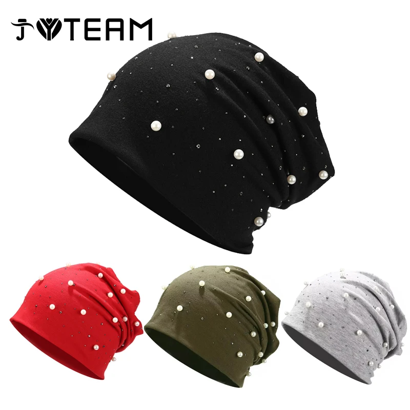 Мягкие хлопковые осенне-зимние облегающие шапки для женщин и девушек, теплые шапки с жемчугом, шапки, тюрбан, шапка, женская шапка