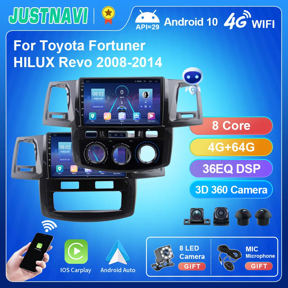Автомобильный радиоприемник JUSTANVI Android 10,0 для Toyota Fortuner HILUX Revo 2008 - 2014 GPS 4G Мультимедиа авто стерео BT IPS экран 1280*720P