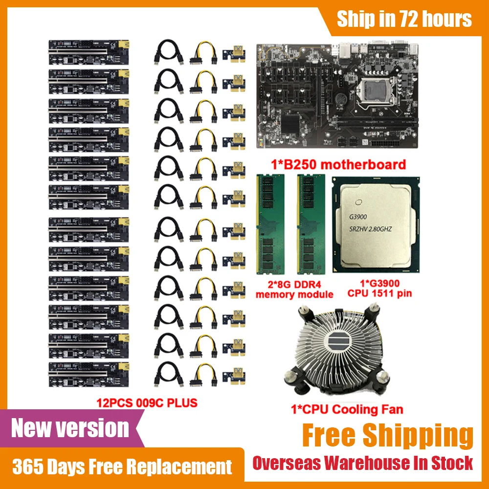 Комплект материнской платы B250 PCIe X1 PCI-E X16 VER009C 010X PCIE Riser LGA 1151 DDR4 SATA VGA Bitcoin BTC ETH, Графическая карта, Майнер