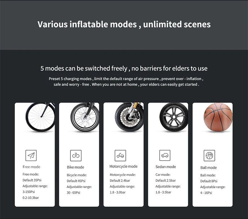 Сила надувания требуется для дорожных велосипедов, а также может надуть обычные велосипедные шины