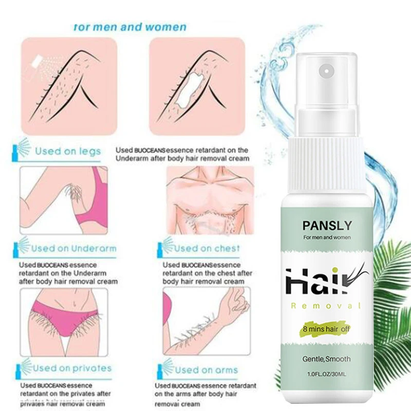 Спрей для перманентного удаления волос Pansly, 8 минут удаления волос, спрей для депиляции волос, бороды, зоны бикини