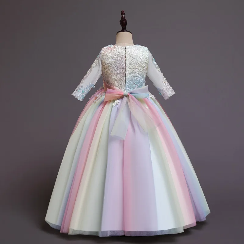 Новые платья для девочек, кружевные платья для подружек невесты для девочек, Официальные Вечерние ничные Детские костюмы принцессы для первого причастия