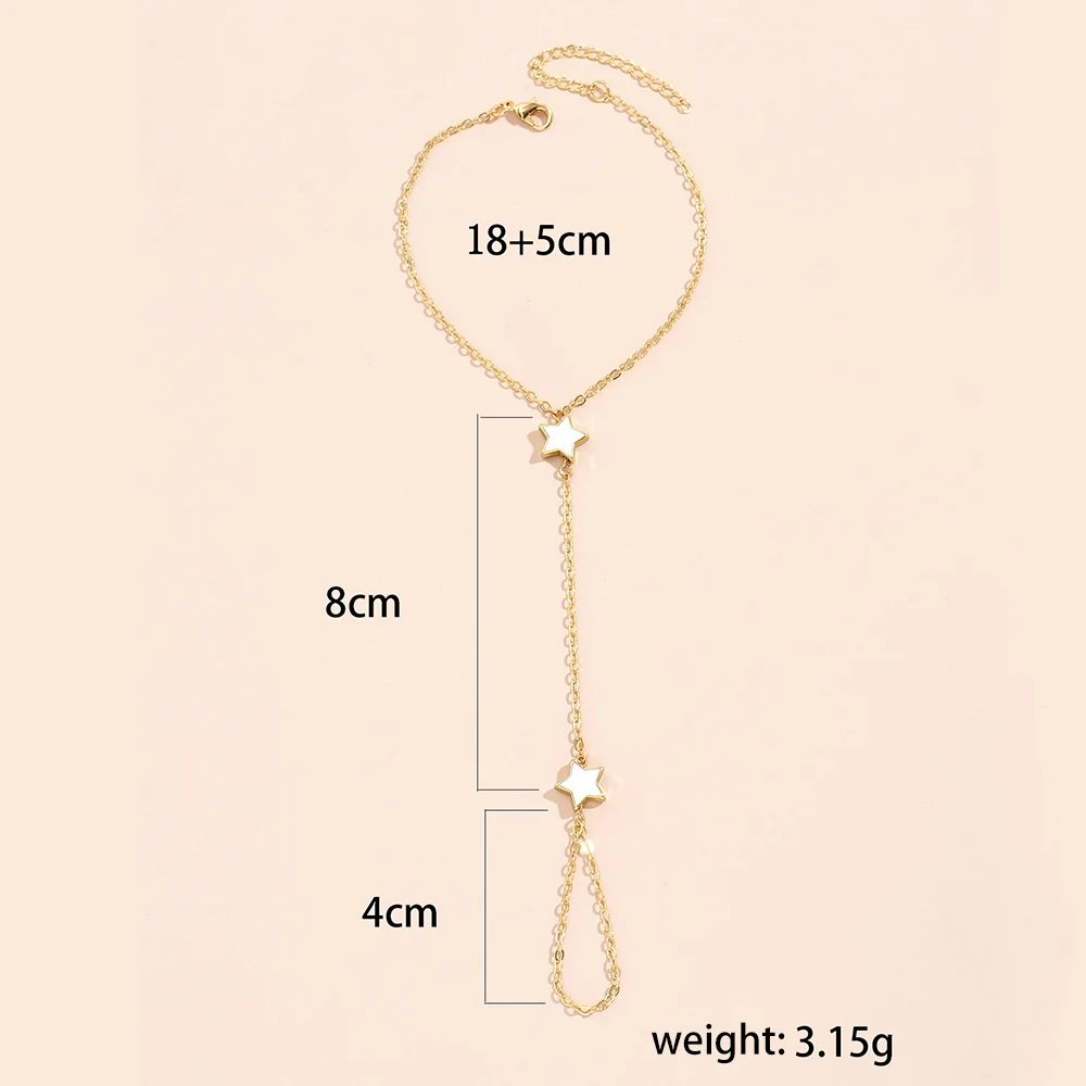 Простая цепочка, браслет, звено, кольцо для женщин, женская белая звезда, соединение рук, жгуты, браслеты на палец, ювелирные изделия, аксессуары