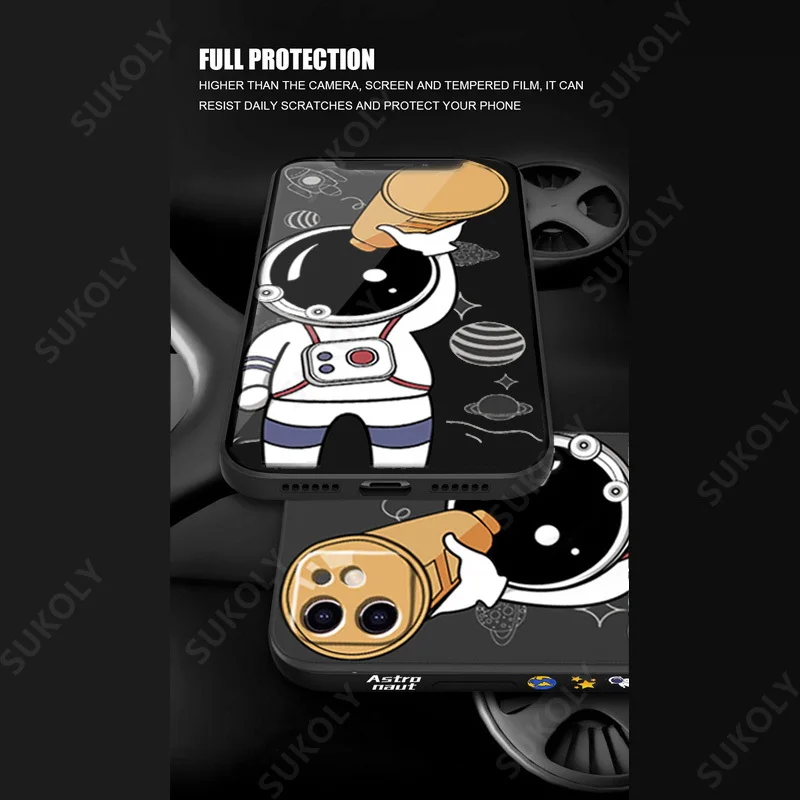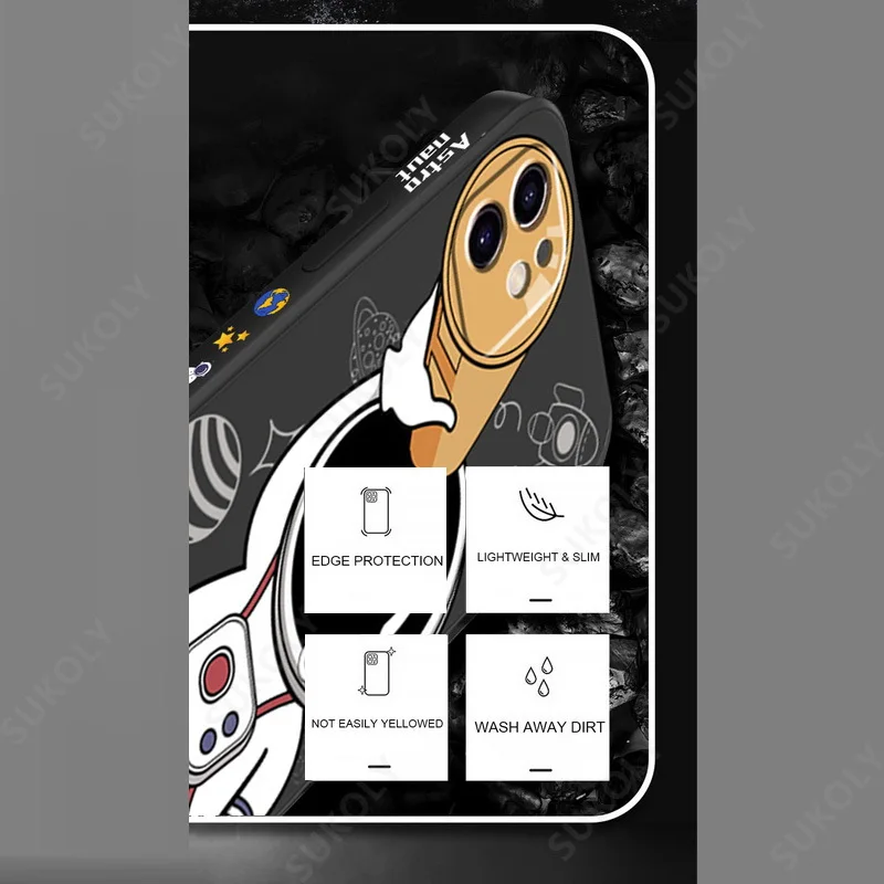Для iPhone 13 12 11 Pro Max XS Max XR X 8 7 Plus SE 2020 космонавт жидкий силиконовый чехол противоударный защитный чехол для объектива бампер