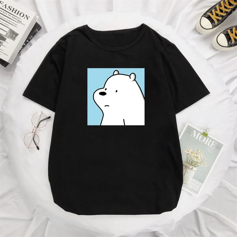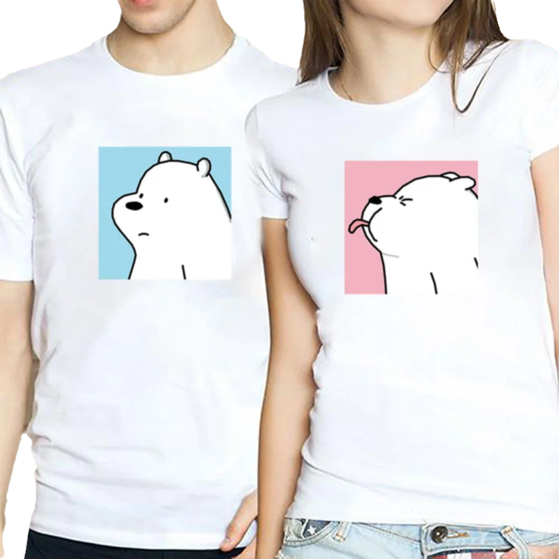 Футболка с милым белым медведем, одежда для пары, Женский Мужской Топ оверсайз, топы Ulzzang, Повседневная футболка с круглым вырезом и коротким рукавом, женские футболки