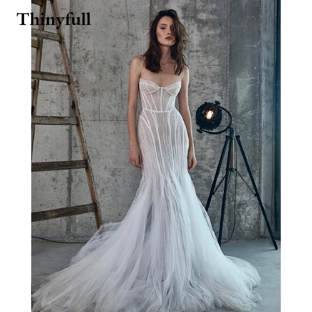 Модные кружевные Длинные свадебные платья с юбкой-годе без рукавов 2022, пляжные свадебные платья для невесты, женское платье