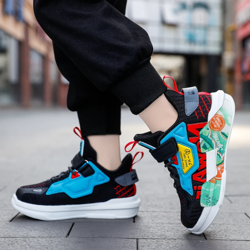 Весна 2022, модная детская обувь, дышащая сетчатая прогулочная обувь на плоской подошве для мальчиков, модная детская обувь для подростков, для бега