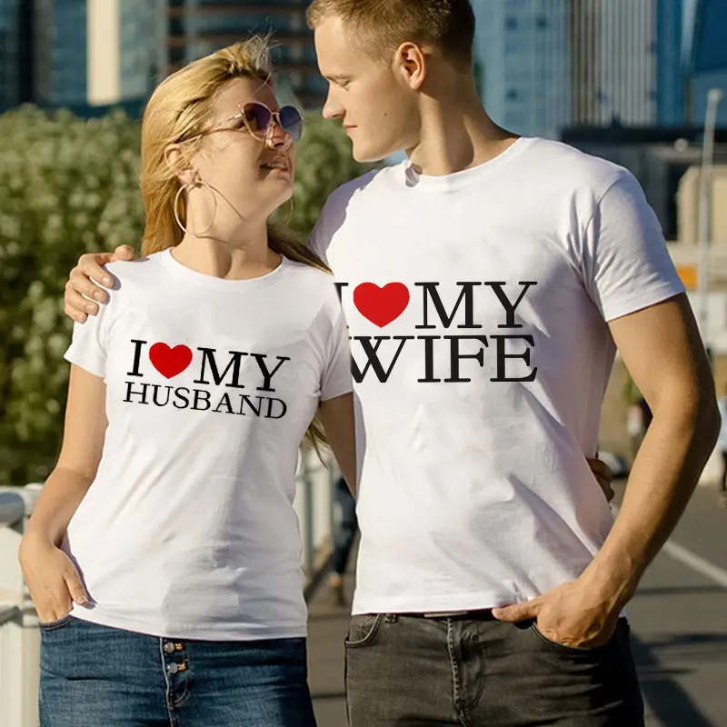 Футболки с коротким рукавом для мужчин и женщин, с принтом в виде надписи Я люблю свою жену и мужа, черная модная одежда с надписью на День святого Валентина