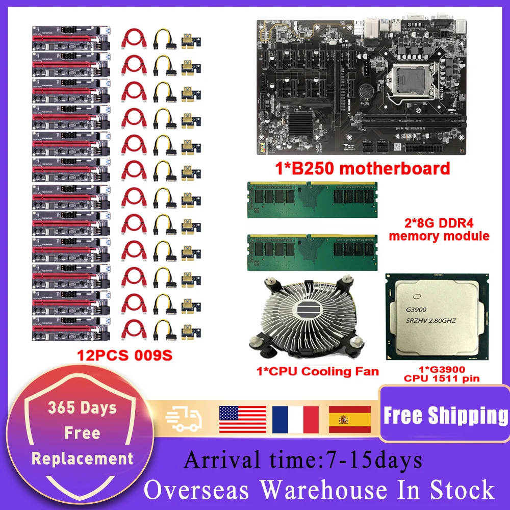 Комплект материнской платы B250 для майнинга с DDR4 VER009S009S PLUS 8x 16x PCIE RISER G3900, охлаждающий вентилятор ЦПУ для 8 12 GPU BTC ETH Майнер
