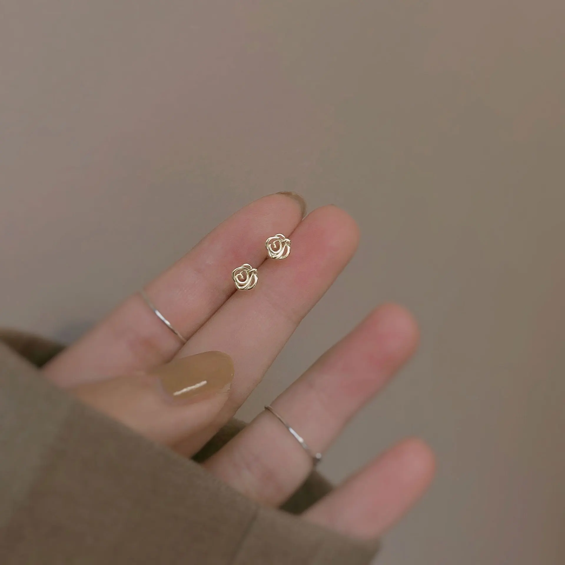 Французский стерлингового серебра 925 пробы 18K золото милый розовый цветок серьги для женщин серебро 925 ювелирные изделия 2021 тренд амулеты простые