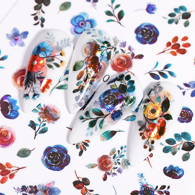 3D наклейки для ногтей, голографические наклейки, цветы, листья, весна, переводные наклейки для ногтевого дизайна, декоративные наклейки для маникюра, сделай сам