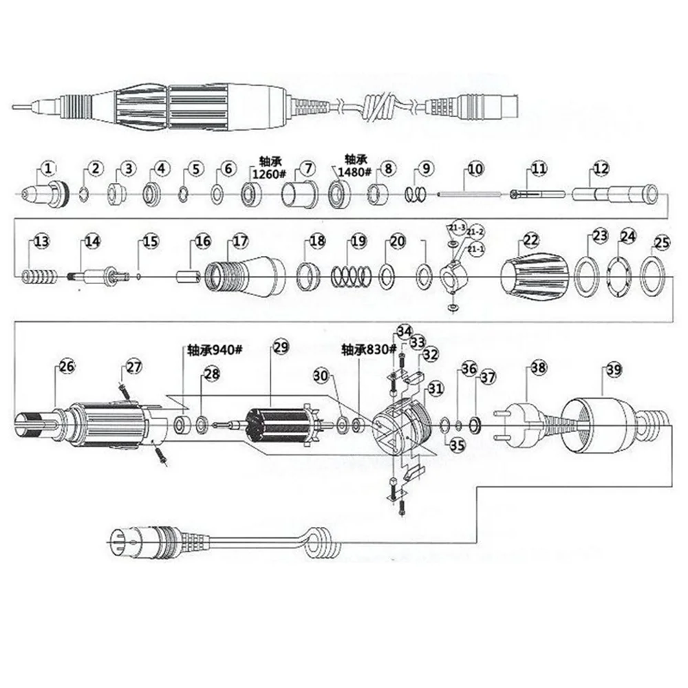 Аксессуары для электрической машинки для маникюра шпиндель с ручкой подшипник с угольной щеткой для мощной дрели для ногтей 210 102L 105L