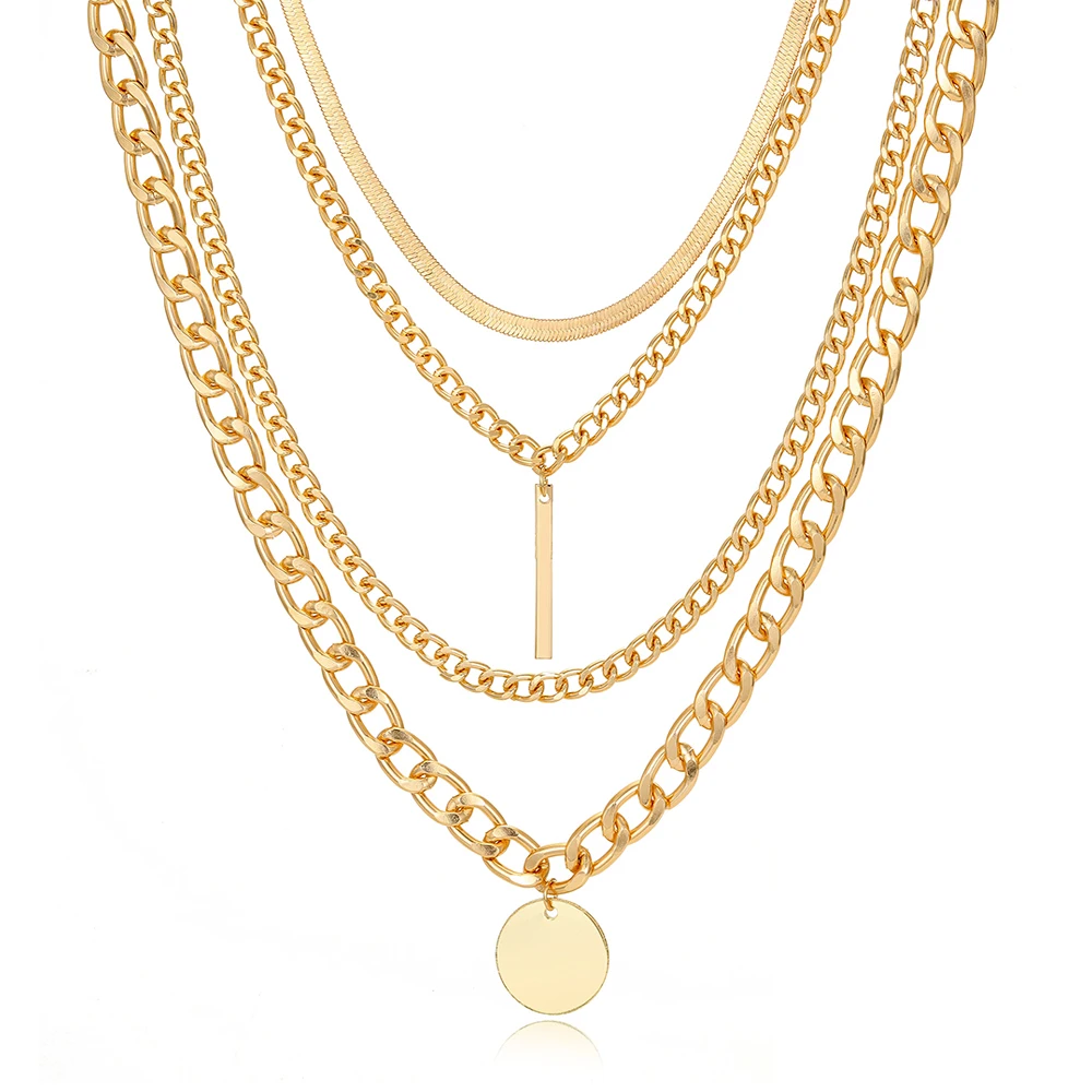 Металлическая цепочка в стиле панк с подвеской в виде монеты, многослойная толстая цепочка, геометрическое ожерелье-чокер, трендовые украшения, подарки Вечерние