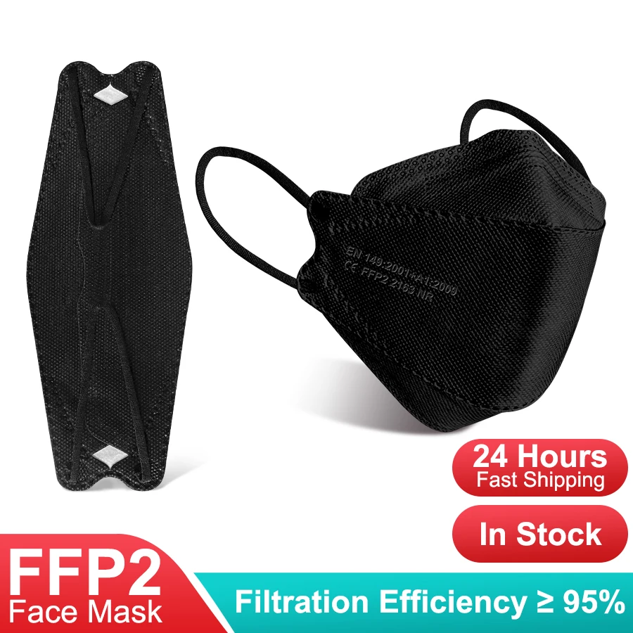 10-100 шт FFP2 взрослая черно-белая маска для лица с рыбками 4Ply Ear Loop многоразовая Крышка для рта модная ткань 3D маска для рта чехол mascarilla