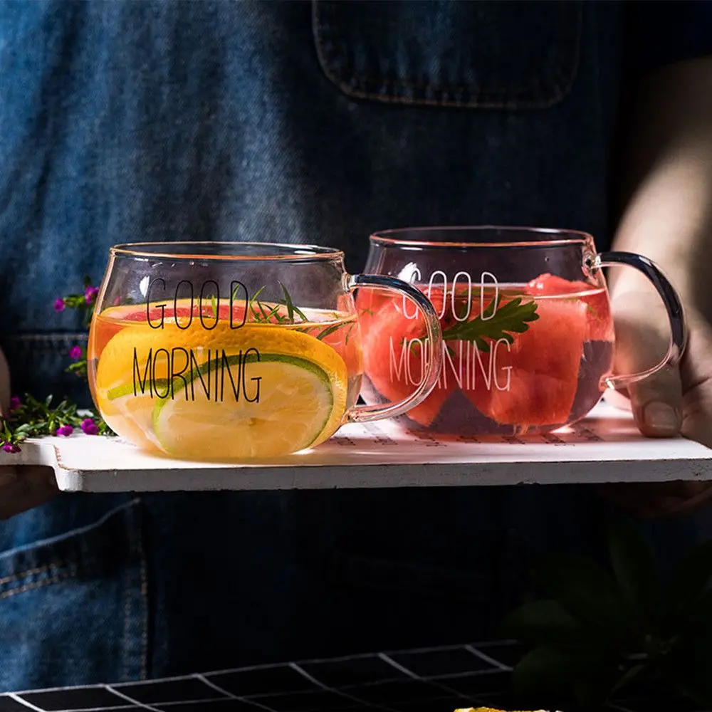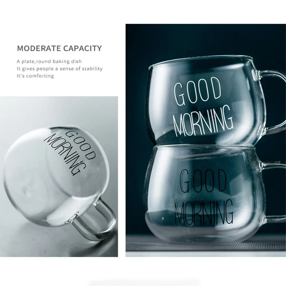 Круглая, доброе утро, прозрачная кружка, чашка с ручкой, чай, сок, буквенная печать, прозрачный стакан для молока, кофе