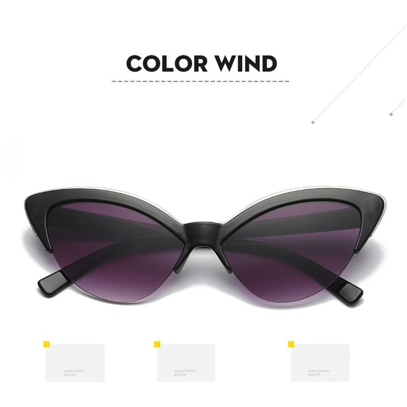 Солнцезащитные очки кошачий глаз UV400 женские, модные брендовые дизайнерские синие очки с затемненными цветами, 2018