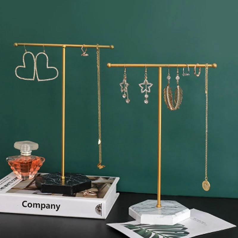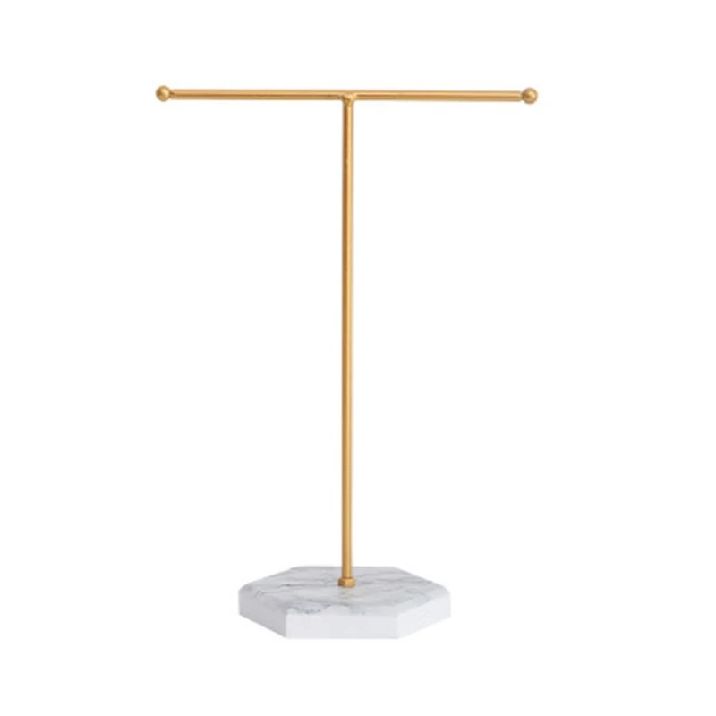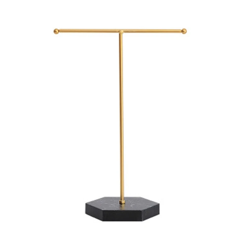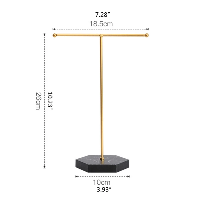 Мраморная T-образная Подставка для ювелирных изделий, металлический держатель для ожерелья, подставка для ювелирных изделий, органайзер с шестигранной основой для сережек B85D