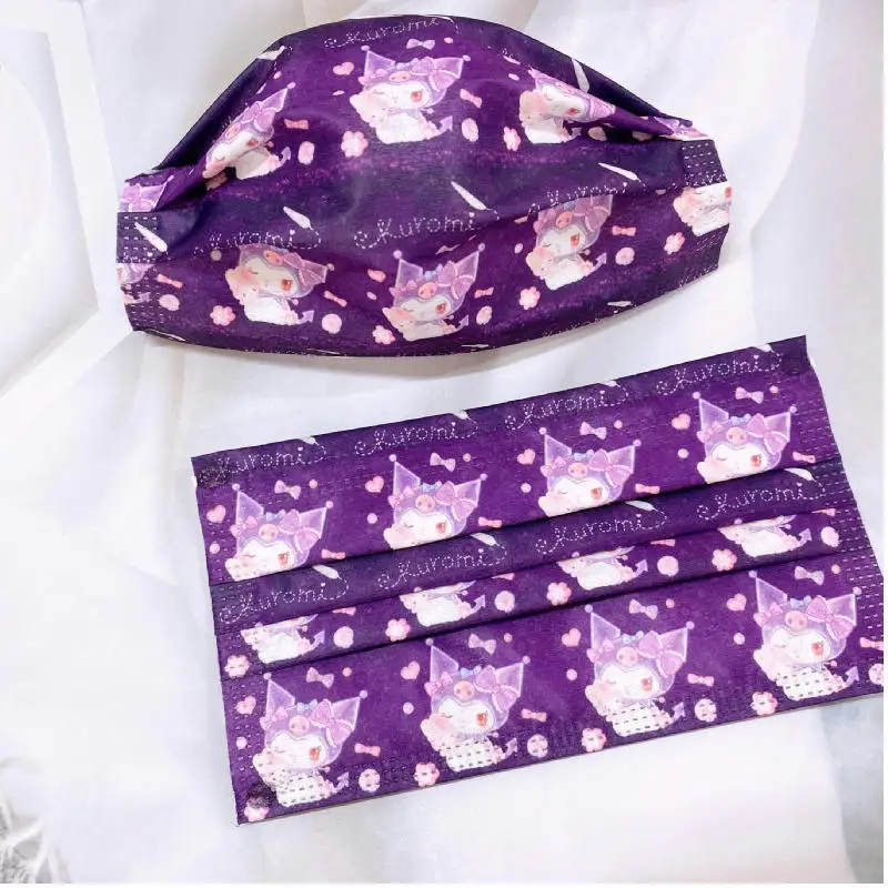 50 шт. кавайная аниме Kuromi цветная маска с принтом одноразовая Защитная 3-слойная маска для лица мультяшная Пылезащитная маска для мальчиков и девочек подарок без коробки