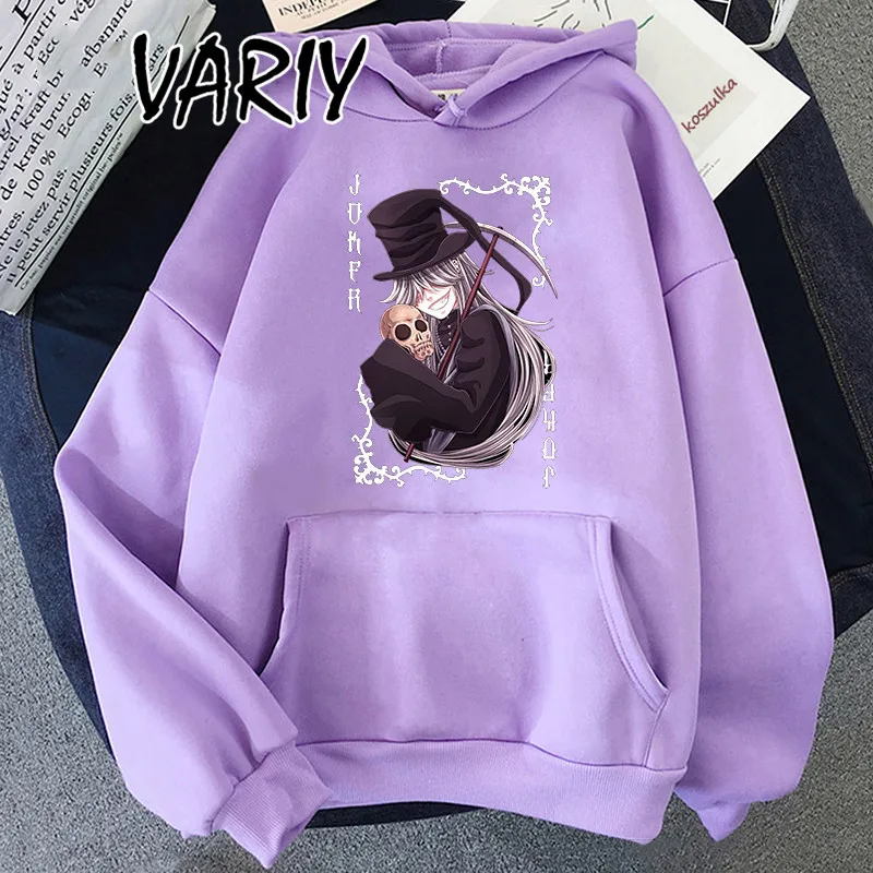 Толстовки с капюшоном в стиле аниме, черные худи дворецкого гробола, забавная японская зимняя женская одежда Манга, толстовка с капюшоном в стиле Хай-стрит Харадзюку