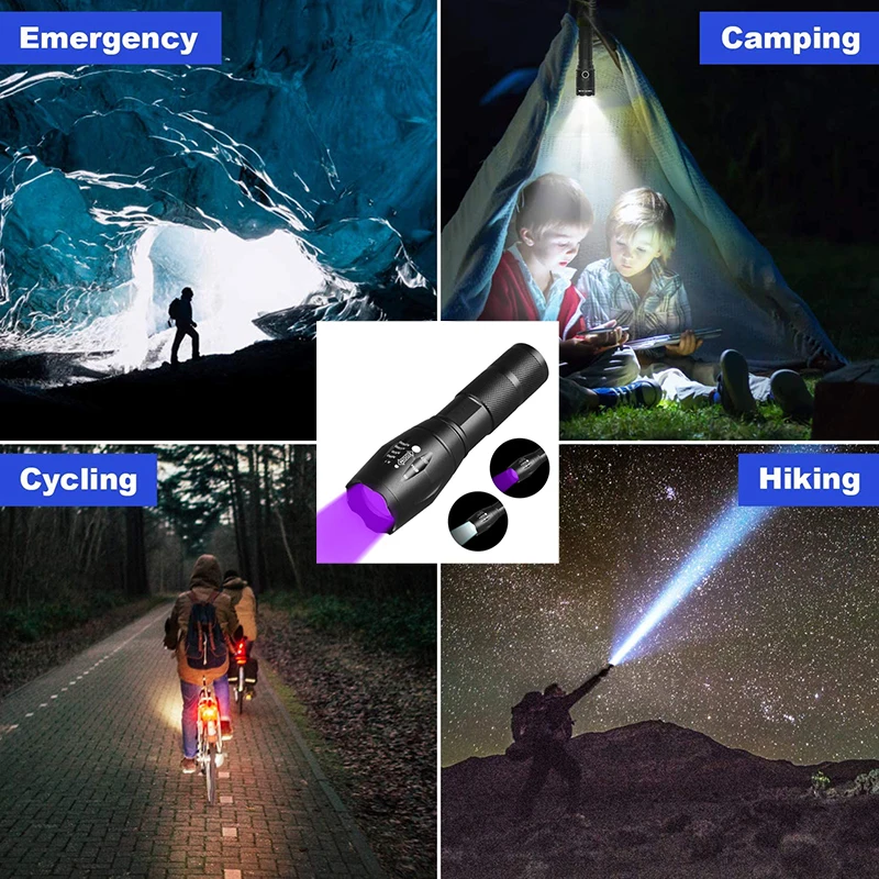Ультрафиолетовая белая двойсветильник светодиодсветильник вспышка с зумом флуоресцентный черный свет ультрафиолетосветильник вспышка лампа обнаружения светильник пышки