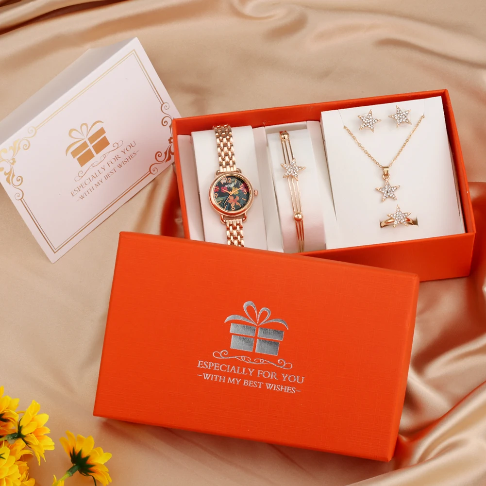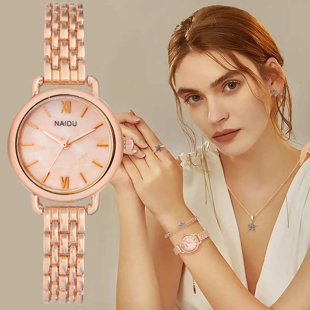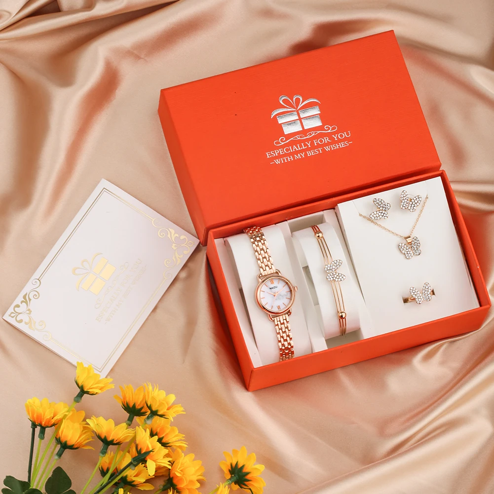 5 шт.комплект, женские кварцевые часы с бриллиантами